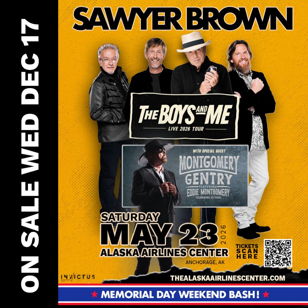 Country Music legends Sawyer Brown have announced a show in Anchorage at The Alaska Airlines Center on May 23, as part of THE BOYS AND ME 2026 Tour over Memorial Day Weekend. Montgomery Gentry ft. Eddie Montgomery will join as special guest.